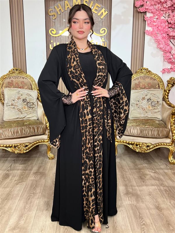 موديل بتصميم عصري يجمع بين الفخامة والعملية، مكوّن من كارديجان حرير فاخر يمنح الإطلالة انسيابية وأناقة هادئة، مع باندا شيفون تايجر تضيف لمسة جريئة ومميزة في التصميم.