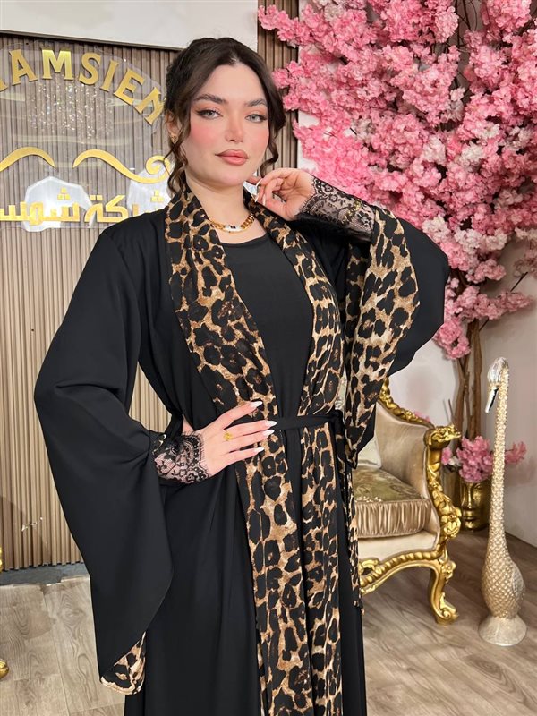 موديل بتصميم عصري يجمع بين الفخامة والعملية، مكوّن من كارديجان حرير فاخر يمنح الإطلالة انسيابية وأناقة هادئة، مع باندا شيفون تايجر تضيف لمسة جريئة ومميزة في التصميم.